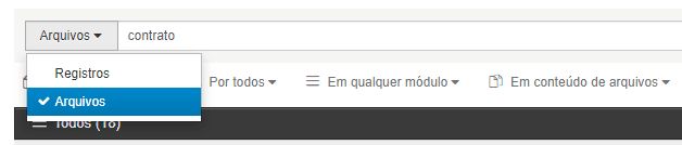 Você pode realizar sua busca pelos campos do registro ou, até mesmo, pelo conteúdo dos arquivos anexados ao registro.