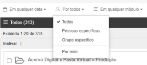 Você também pode filtrar por registros cadastrados por pessoas ou grupos específicos.